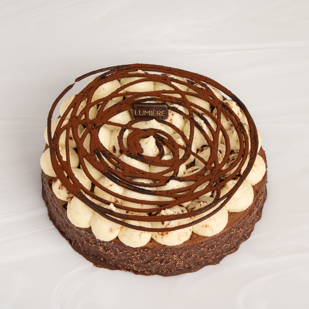 Coconut dacquoise, dairy free dark chocolate mousse, toasted coconut diplomat (Dairy Free)